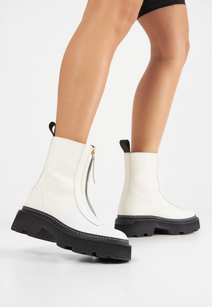 Not all “white” hues behave the same. In fall, off-white, cream, or winter white boots feel softer and more season-appropriate than stark, blue-toned white.